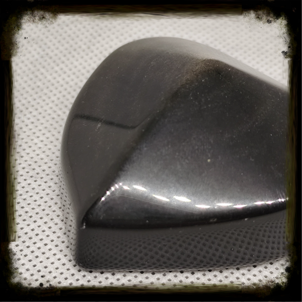 Cette pierre est une magnifique obsidienne dorée, une variété de roche volcanique vitreuse de couleur noire, dont la particularité réside dans ses superbes irisations aux reflets dorés. Ces brillances, qui ressemblent à de minuscules éclats d'or, sont le résultat de la présence de bulles de gaz microscopiques et alignées lors de la formation de la pierre. Elles créent un effet visuel spectaculaire, donnant l'impression que la pierre est éclairée par une lumière intérieure.