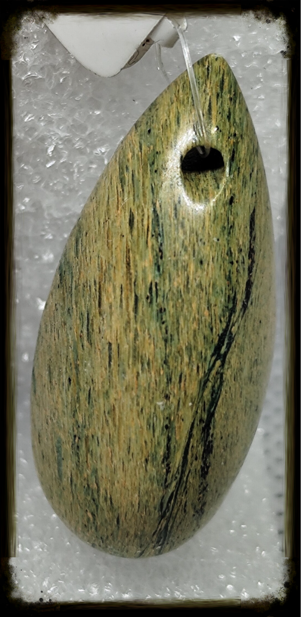 Ce pendentif présente une pièce de muscovite soigneusement polie, qui capte la lumière pour révéler un éclat argenté ou une transparence subtile. Ses nuances peuvent varier du clair au brun rosé, et sa texture unique en feuillets lui confère un aspect à la fois doux et scintillant. La pierre est montée sur une bélière discrète, prête à être portée avec une chaîne ou un cordon de votre choix.