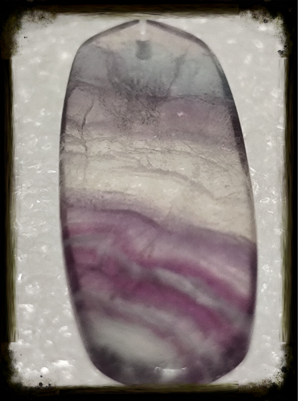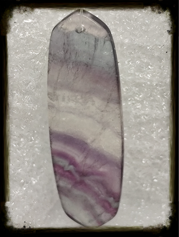 Découvrez ce pendentif unique en fluorine multicolore, une pierre naturelle qui captive par ses superbes bandes de couleurs vives. La fluorine se présente souvent dans une combinaison de teintes allant du vert émeraude au bleu saphir, en passant par le violet améthyste et le jaune doré. Ces couches de couleurs forment des motifs striés ou zonés, rendant chaque pendentif absolument unique.