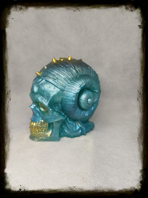 Crâne Décoratif "Sultan des Glaces" : Turquoise Scintillant et Or