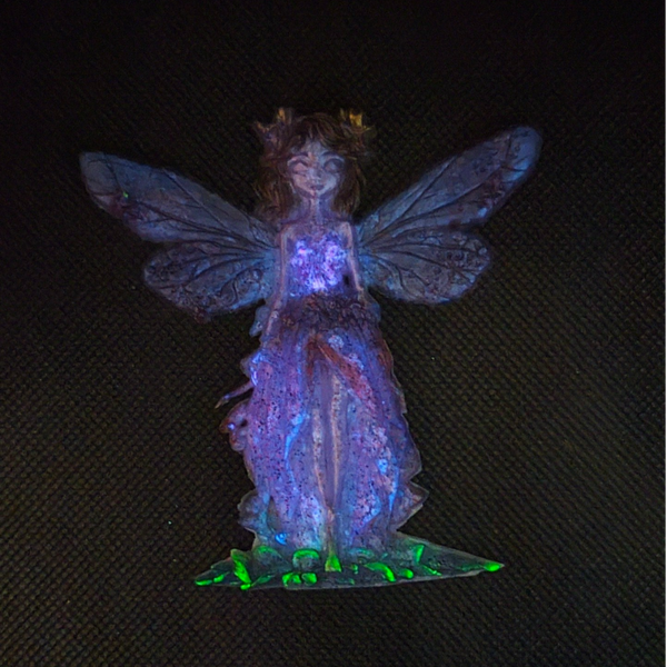 L'Éclat Mystique de l'Aube : Fée Décorative en Résine, Ailes Opalescentes et Corps Scintillant "Glow-in-the-Dark".