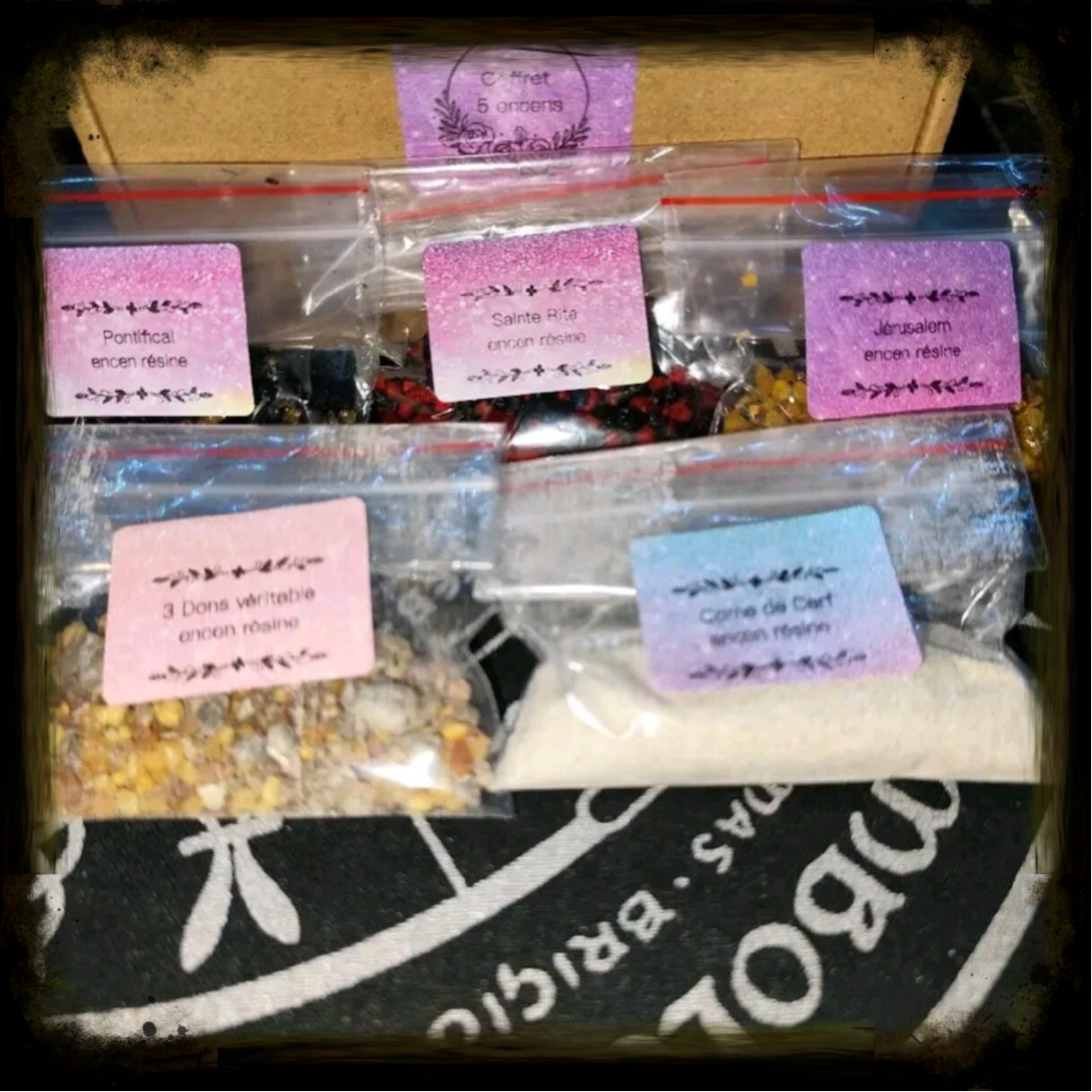 Coffret 5 Encens Résines Spirituelles – Protection, Purification & Harmonie | Rituel Ésotérique