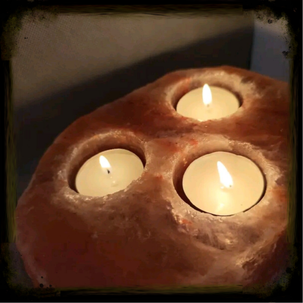 Bougeoir Triple en Sel Rose d’Himalaya – Énergie Sacrée, Relaxation & Harmonie